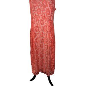 apt 9 Coral Orange Sleeveless Strappy Lace Double Layer Midi Dress Sz XL Womens
