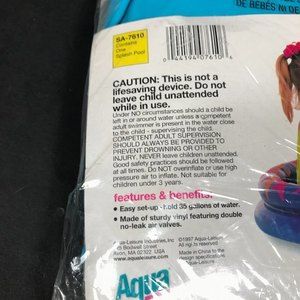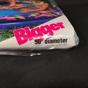 New in package blow up kiddie splash pool. Has dolphin print on edge. Holds up to 35 gallons of water and measures approx. 50" in diameter when deflated.