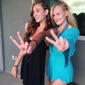 Very flowy, low cut in front so you could definitely wear a Bralette 💙 lace on the wrists😍 can fit a 4-6. Brand is Dee Elle. I got it from a fancy boutique and wore it once☺️ too small for me now