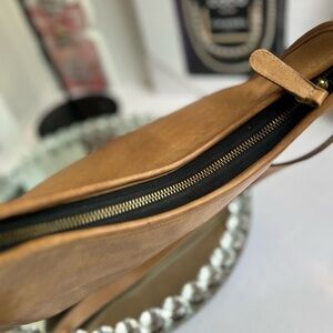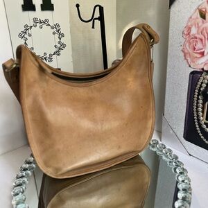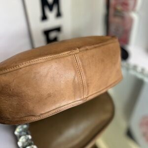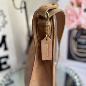 This Coach shoulder bag in a sophisticated tan leather is a perfect blend of style and practicality. The embossed Coach logo adds a touch of elegance, making it a versatile accessory for any occasion. Its neutral tone ensures it complements any outfit effortlessly.