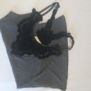 a'reve tank top with black lace design, size medium. Worn once, no tags