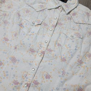 ariat short sleeve button floral blouse white with flowers fancy buttons Large