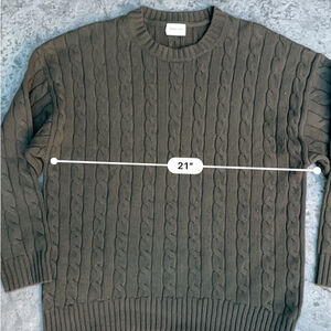 aritzia Peggy Sweater Merino wool crewneck cable-knit sweater Olive