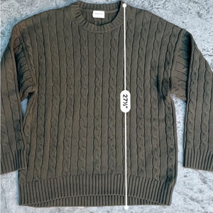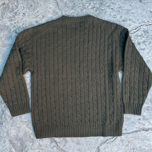 The epitome of the Big Comfy Sweater. This is a crewneck sweater with dropped shoulders, ribbed trim and fully fashioned construction. It's made with Infiniti Wool — responsibly sourced extra-fine merino wool, recycled nylon and organic cotton yarn that’s naturally warm with an infinitely wearable, soft feel. This version is constructed using our Preppy Cable stitch in a unique repeated pattern for a three-dimensional look and texture. Stay cozy and stylish with this olive cable knit sweater. Perfect for layering in cooler weather.
