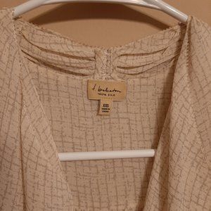 EUC, subtle check pattern, silk, has ruffles, semi-sheer, fits xxs-xs.
