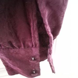 EUC, row of cloth buttons down the front. I can't remember the name of this blouse but it's SIMILAR to the bloomsbury shirt if you want to look up stock photos. Dark plum or wine colour.