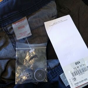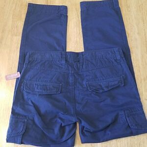 Navy Blue Slim Tapered Cargos 32 X 30 100% Cotton Extra Buttons New With Tags Never Worn