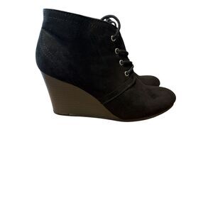 arizona green co. black wedge boots size 9m lace-up women's memory foam.