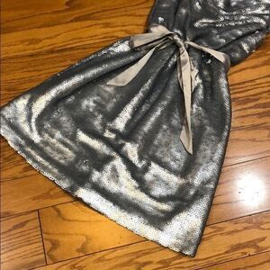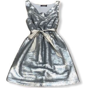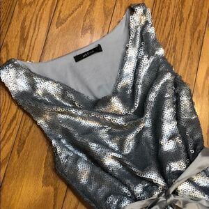 ark & Co Cowl Neck Sleeveless Silver Metallic Sequin Dress Sz S