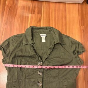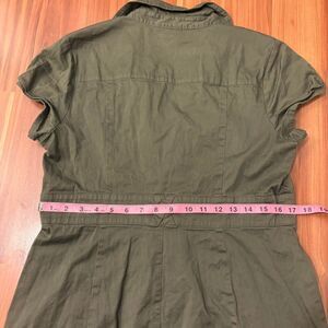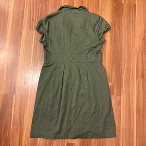 army green, cargo style, collared, button-up, cotton dress, pocket detail, utilitarian, fall fashion, military-inspired, casual