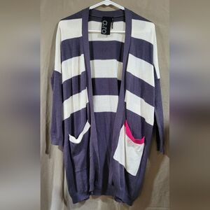 a+ro medium blue white striped with pink strip pocket long open front cardigan