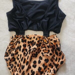 Dive into style with this chic one-piece swimsuit from art class, featuring a sleek black top and a striking tan bottom with side cutouts for a modern twist. The unique design combines elegance with a touch of wild flair, making it perfect for making a splash at the pool or beach.