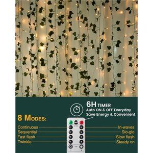 🧿【CE Certified String Lights】- Powered by 3 AA batteries (not included), the 32.8ft LED light string included is crafted from thermal plastic insulated copper wire, soft and easy to bend. No overheating, always cool to the touch. The light strand is not fixed to the ivy vines, maximizing DIY flexibility for any creative settings.