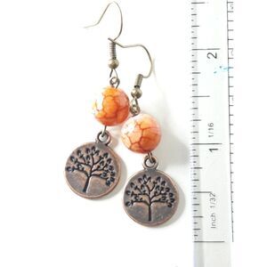 artisan earrings 208#mfs Crackle Agate Tree of life earrings Red White Orange