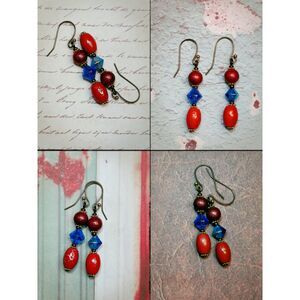 artisan earrings 445#mfs NEW boho carmine blue glass bead earrings victorian hat + bohemia eclectic unusual handmade OOAK