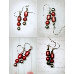 artisan earrings 454#mfs NEW boho burgundy hatpin drop earrings victorian goth A + bohemia eclectic unusual handmade OOAK