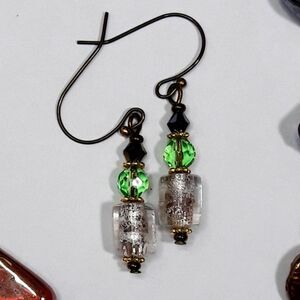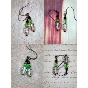 artisan earrings 464#mfs NEW boho foil center glass barrel beads goth green crys + bohemia eclectic unusual handmade OOAK
