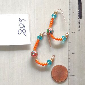 artisan earrings 608#mfs NEW boho orange bead copper threader earrings CopperH