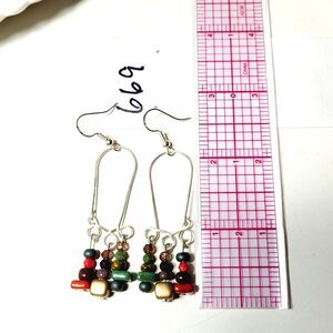 artisan earrings 669#mfs Czech glass fringe boho earrings green multicolor mix g