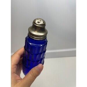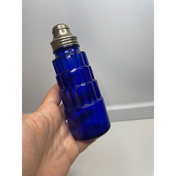 (as is) one Art Deco Ziggurat Hazel Atlas Skyscraper Blue Glass Shaker Cocktail
