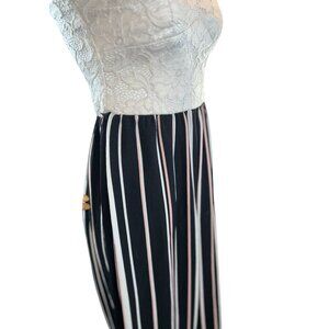 as u wish Mixed Media Wide Leg Jumpsuit in Lace & Stripes