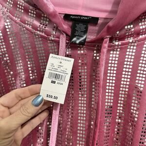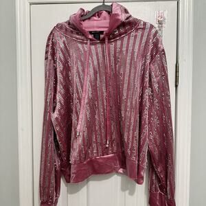 ashley stewart resequin sport hoodie sweatshirt pink Plus 22 24 2x new