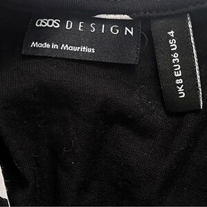asos design Mini Dress Black White Polka Dot V Neck with Fabric Ties Sz 4