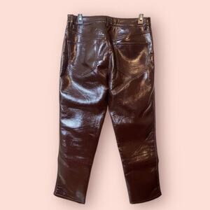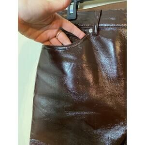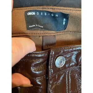 asos design high waisted vinyl jeans in chocolate brown. size 30x28. high rise straight leg pants with button closure. super cute faux leather shiny look. never worn. unisex gender neutral size 30, womens size 10 or large