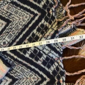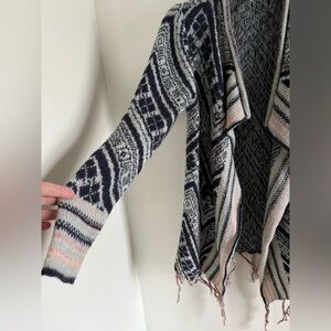 asymmetrical Fringed Open Front Cardigan Aztec Western Wool Blend Sweater size M