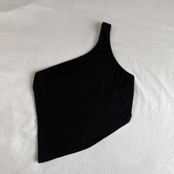 asymmetrical black ribbed crop top