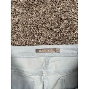 Athleta sculptek Biscayne Lahore light blue, 5 pocket, zipper and button closure detail. Innovative sculpted fiber with 360° stretch technology that moves with you and retains its shape.