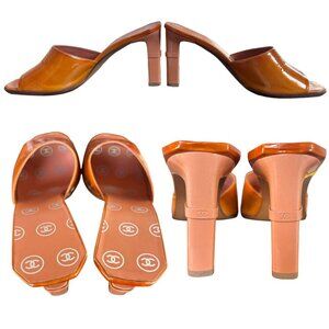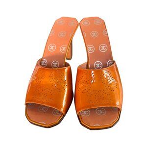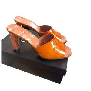 Super beautiful 100% authentic PEACHY/ORANGE patent leather Chanel Heels/Sandals.