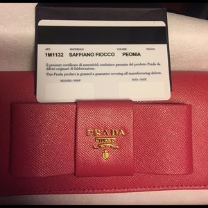 @honeyypark hi, yes it has the prada box and authenticity card. It's dark pink.