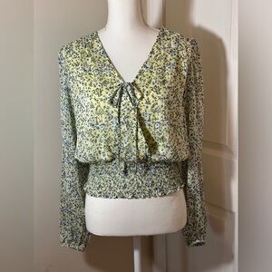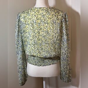 "Autres Filles" yellow floral long sleeve sheer crop v-neck blouse. Size medium.