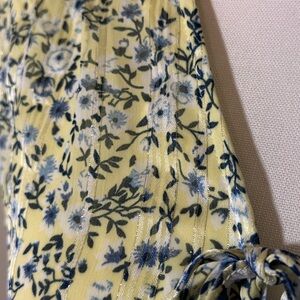 * Color/Pattern: Yellow with a floral print, featuring blue flowers.