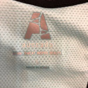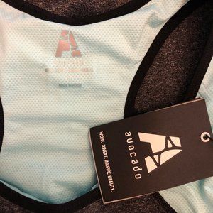 avocado Performance Racerback Tank. Performance racerback tank in light turquoise with reflective trim on upper back. Great stretch and comfortable fit. Black side panels create a slimming, fashion-forward silhouette. Removeable, padded cups. 43% nylon/ 43% polyester/ 14% spandex. NWT.