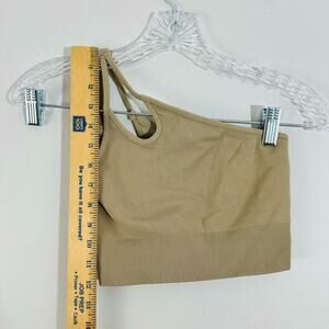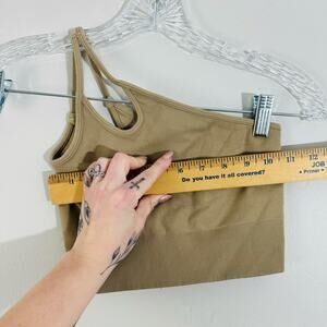 avocado tan seamless 1 shoulder ribbed cropped tank size m