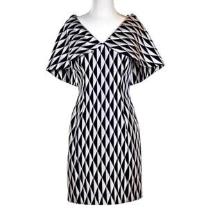 b Michael America Red Collection Jacquard Metallic Cape Shoulder Dress, Size 16