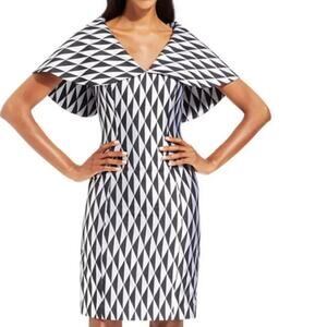 b Michael America Red Collection Jacquard Metallic Cape Shoulder Dress, Size 16