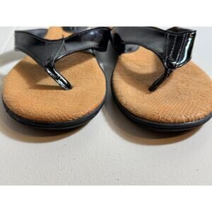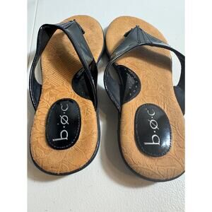 b. o .c. sandals black patent leather vegan flip flops padded insole comfy Sz 8