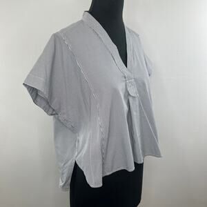 b+ab Blue White Seersucker Short Dolman Sleeve Boxy V-Neck Popover Top Blouse XS