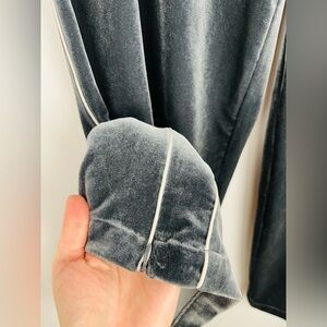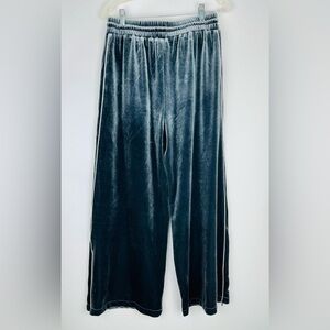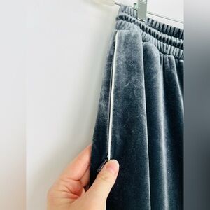 Stunning fashion track pants. Incredibly high quality with zip pockets and ankles. Side stripe. Soft velour fabric. Size medium. Waist about 14.5 inches laying flat. About 13.5 inch rise and 27.5 inseam. Excellent condition with no defects.