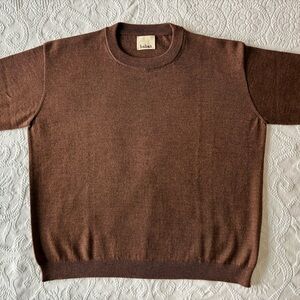 Gorgeous jumper by babaa. Extra fine 100% merino wool short sleeve top with crew neckline. One size, in a rich chocolate brown hue (roble rojo). A super soft, warm and timeless layer.