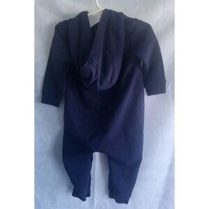 preowned baby gap fleece romper zip with snaps at the top 12-18 months says new york city est 1969 blue hooded