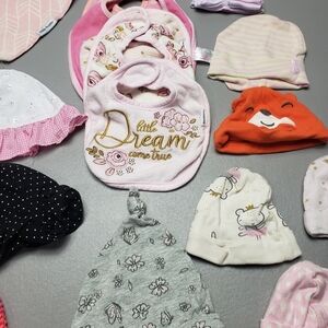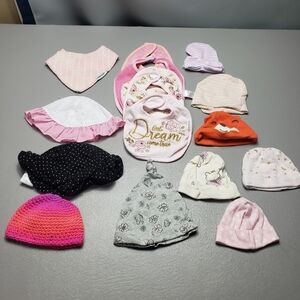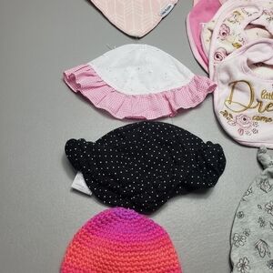 baby girls hat and bib bundle of 16 sizes range from 0-12 months