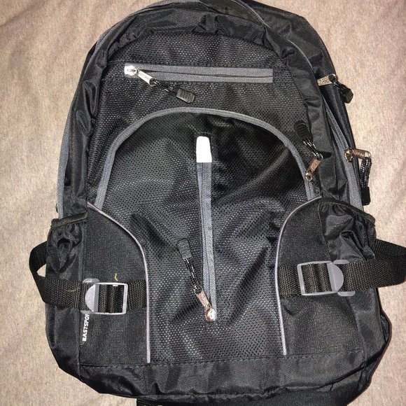 black backpack with straps, buckles, and many many pockets NEVER USED