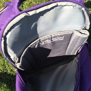 this is a great and strong backpack. it has several pockets including a water bottle holder. it is in GREAT condition, although it is a little dirty.