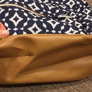 tiny hole in bottom that is easily patchable! 2 compartments. barely used. cute design! navy blue