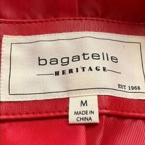 This red bagatelle lace-up jacket is just beautiful! Amazing detailing. Silver hardware. Three zippered front pockets. Underarm flat across is zipped is 19”. Length is 22”. Sleeve is approximately 25”.