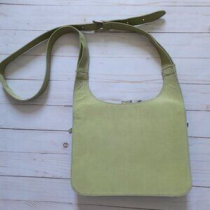 Very good pre-owned condition. baggallini Multi-Pocket Crossbody with Adjustable Handle. Color: light green/spring green with blue stitching. Handle is adjustable with a buckle.